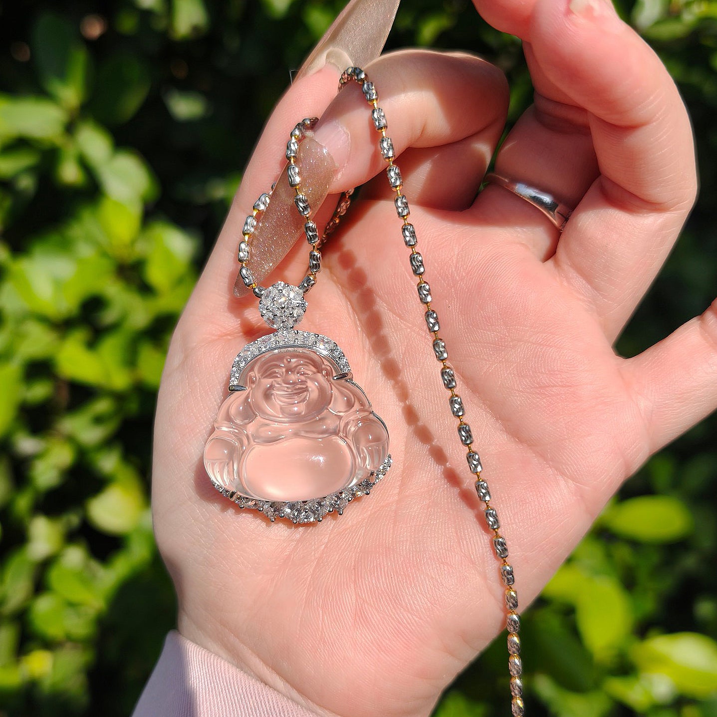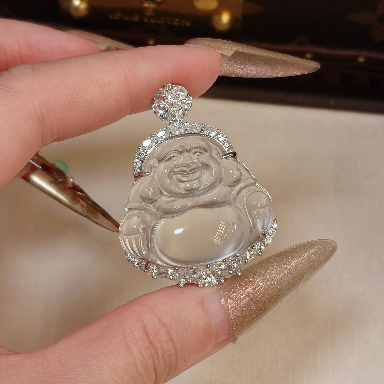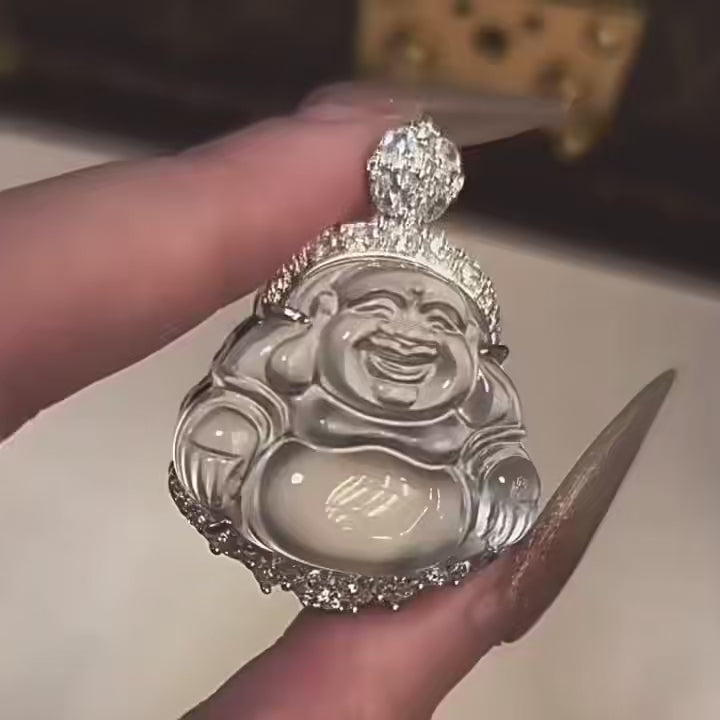 Happy Buddha Jade Pendant, Laughing Buddha, Budai, Water Foam Jade Carved Pendant